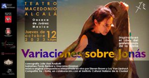 Domenica 15 Ottobre 2023, ore 18 Foro Antonio López Mancera, CENART Coreografia: Julie Ann Anzilotti Ballerini: Paola Bedoni, Giacomo Graziosi Musiche originali: Steven Brown, Luc Van Lieshout Video: Francesco Margarolo Dopo la tappa oaxaqueña la Compagnia XE di Julie Ann Anzilotti porta lo spettacolo Variazioni su Giona a Città del Messico, per un’unica replica presso […]
